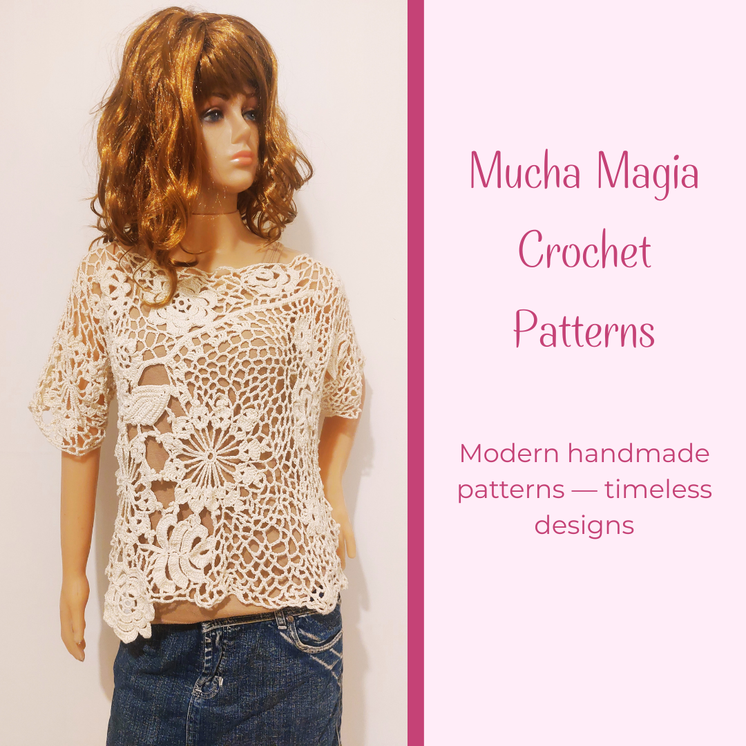 I’m Lola Antifora, designer and creator behind Mucha Magia, a store dedicated to handmade crochet patterns. Here, you’ll find high-quality PDF patterns, focusing on Irish crochet, motifs, lace, and freeform crochet.